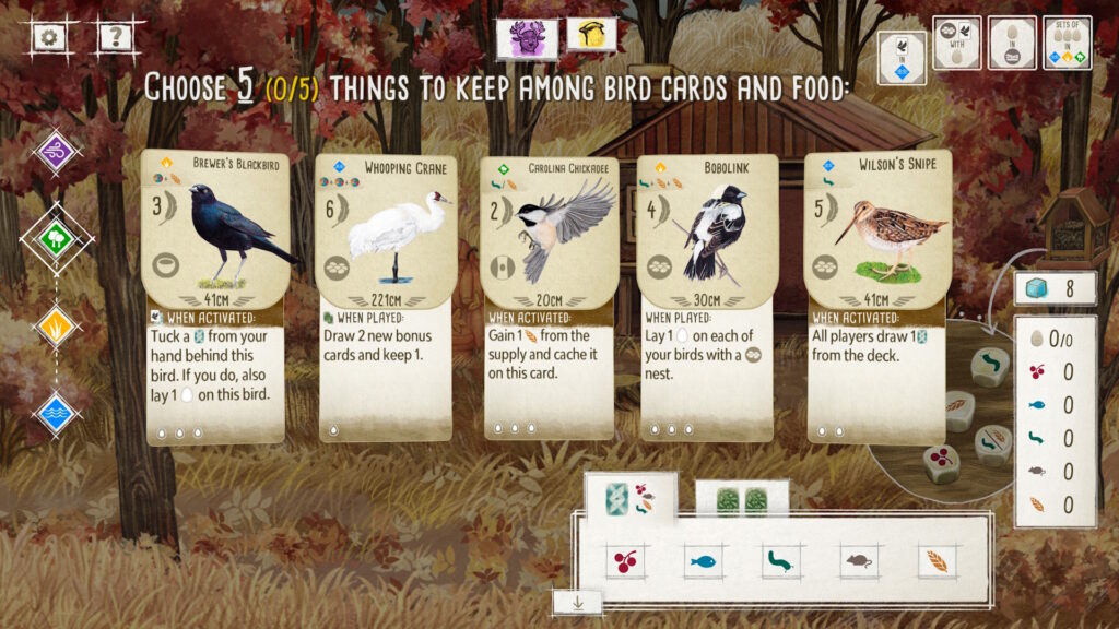 This bird-themed game won a lot of praise and awards a few years back and I’d always been curious about it though I’d stopped playing physical boardgames by then. So when they made this digital version, I thought I’d at least learn the rules and check it out for myself. I’ve read that some players have had synchronizing issues with multiplayer but that doesn’t concern me and I have to say that this is an exceptionally pretty and slick digital conversion.