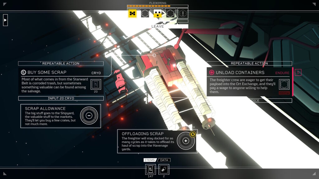 It does feel like a desperate scramble for survival at first. You’re new to the station, you have no idea where to get money or food or the stabilizer you need to repair your body. All the while the timer keeps ticking down and every bad move threatens to drop you off the edge of a cliff. Except after a while you realize that the threat is really smoke and mirrors. Even when the chips fall, you’re handed a lifeline. You do need resources to survive but at predictable intervals that you can plan for. While there are many, many options on how to spend your limited time, they all follow a similar pattern. Different options grant you money, energy or more often your standing with a faction or a friend. More importantly, the world often doesn’t move until you make it move. You can take on as much or as little burden as you want. It won’t be long before you can not only survive but thrive so long as you can tolerate the slow, steady grind.