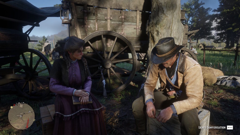 As I noted, this is old by now but it’s still one of the most gorgeous games I’ve played. Whether it’s the woods densely packed with wildlife, sweeping mesas that we’ve seen in so many Western films, or the towns large and small, everything is as intricately detailed and high quality as we’ve come to expect from Rockstar. There’s a wonderful day and night cycle, so you can experience the moors bathed in moonlight, there’s weather with thunderstorms or light rain. The richness and variety of the animations are just as important so you can see Arthur interacting with the world in all kinds of ways. The entire map is objective huge and the effect is exaggerated since your speed of travel by horseback is slower than other other games. I confess though that at times I’d hoped for an even bigger world because in the interests of making sure players have enough to do, the map feels too dense. You can’t track an animal for very far before it gets scared off by some random person riding his horse nearby. In order to create a proper sense of the wilderness, it needs to be big and mostly empty of people.