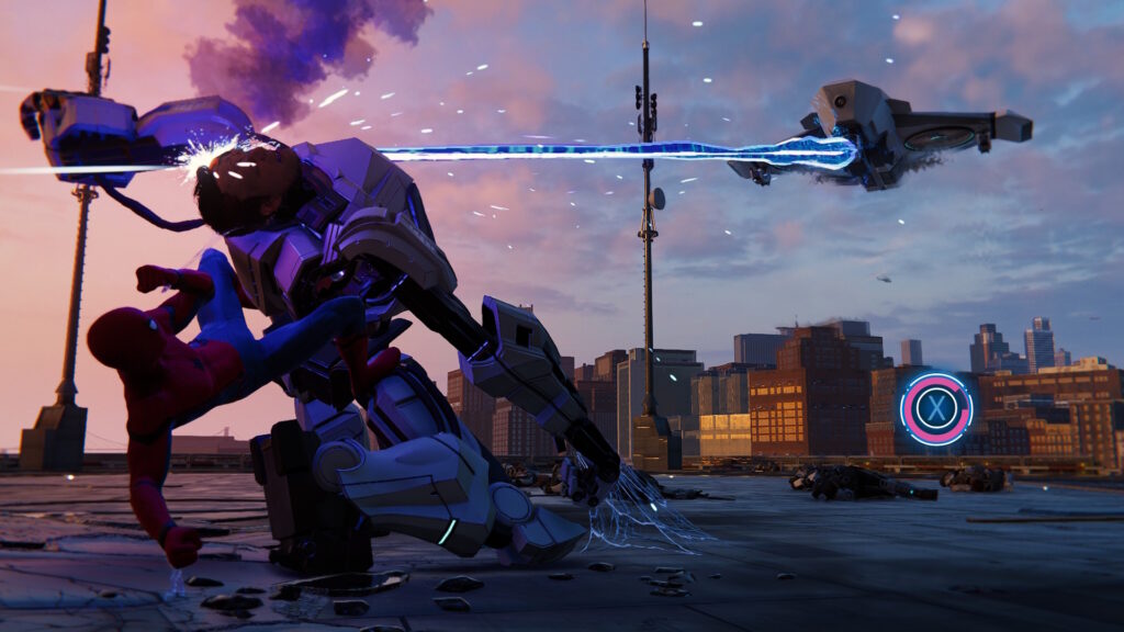 The story, continued across the three DLC, start on good building blocks. Black Cat playing coy with Spider-Man, Yuri Watanabe being enraged to the point of going rogue, Silver Sable returning to the city etc. But the resolution of their individual threads was disappointing to me. Black Cat’s teasing goes nowhere and her brief appearance in the last DLC is pointless. I didn’t know about Yuri being a comic book character so that revelation was cool, but we never get to see her in action. They do get Silver Sable mostly right. Not only do we finally get to fight her, and it’s even a very difficult one, but she features in a really exciting set-piece sequence with her VTOL fighter jet and she gets to meaningfully participate in the climactic fight. To build Hammerhead up into a plausible endgame threat, he gets a lot of technological enhancements. But it’s silly to me that Hammerhead of all characters can grow powerful enough to effectively take over New York City.